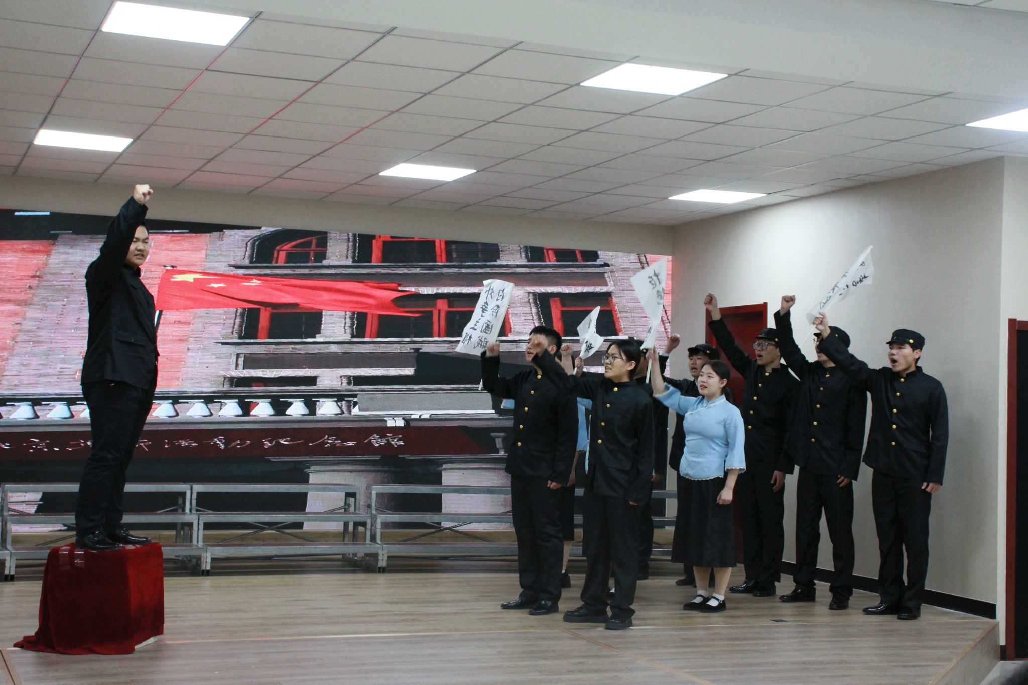热烈祝贺我系在河北水利电力学院纪念毛泽东同志诞辰132周年红色诗词朗诵大赛中斩获佳绩!我系紧扣赛事主题,以五四运动主题话剧为引,以《国际歌》为序,将伟人毛泽东诗词以时间顺序进行传颂,充分体现诗词的韵律之美和情感力量,传递伟人作品中的精神内核与时代价值,凭借扎实的准备与稳定的现场发挥,在八系中脱颖而出,获得校级一等奖。