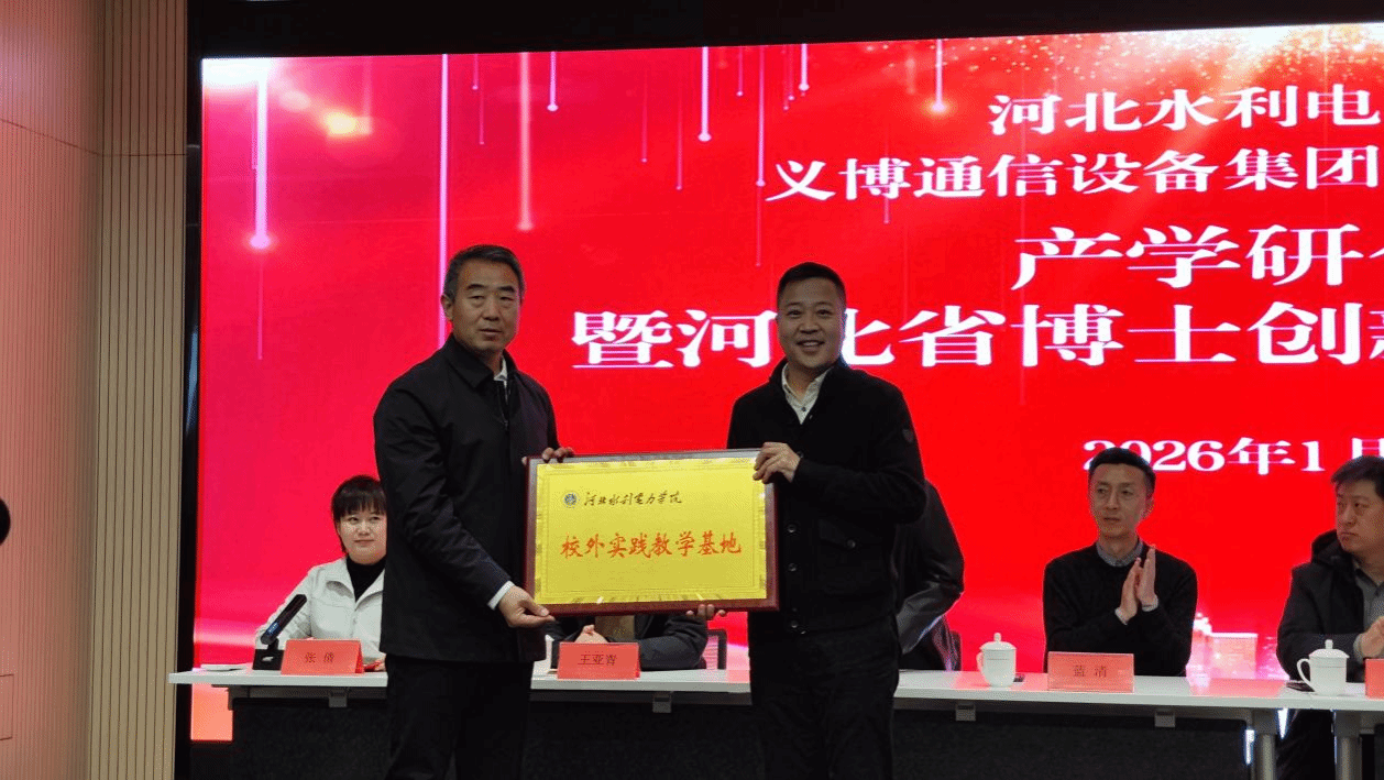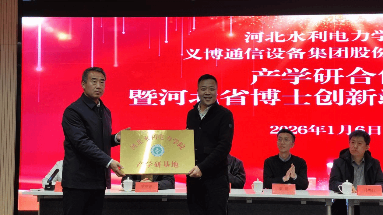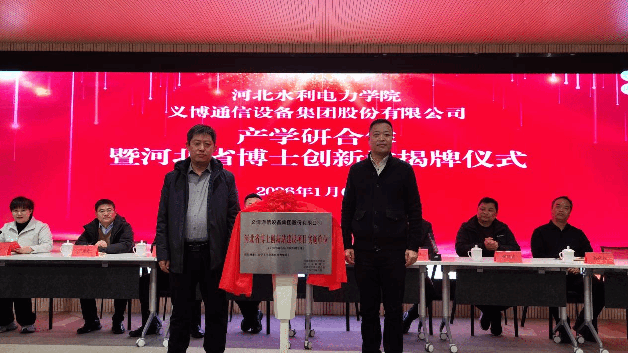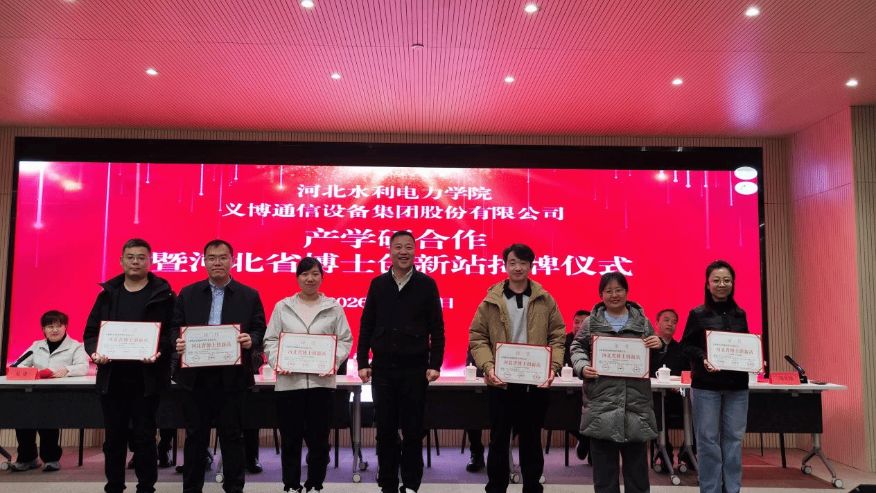 2026年1月6日,河北水利电力学院与义博通信设备集团股份有限公司产学研合作暨河北省博士创新站揭牌仪式隆重举行。这标志着我系在深化产教融合、推动科技创新与产业发展深度融合方面迈出了坚实步伐,为自动化等优势学科专业的成果转化与人才培养搭建了高端平台。