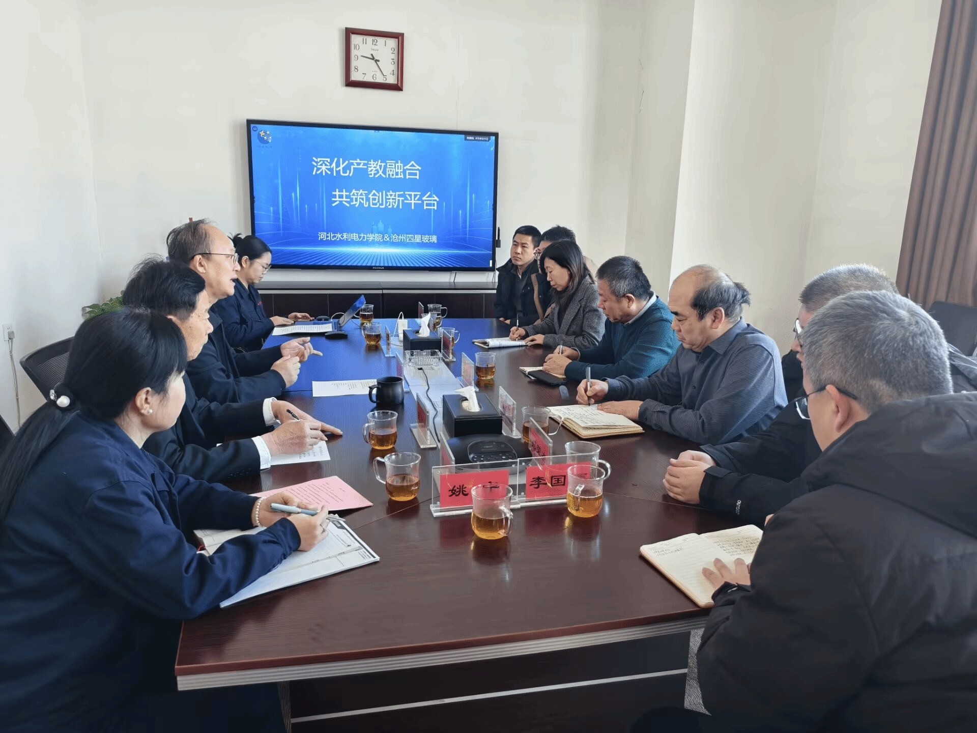 2月2日,河北水利电力学院电气自动化系主任唐勇、机械工程系主任张铁壁率两系教师团队赴沧州四星玻璃股份有限公司进行访企交流。双方围绕“深化产教融合、共筑创新平台”的主题,共商需求、共研方向、共谋落地,深入探讨校企产教合作新模式、新路径,推动合作走向纵深。