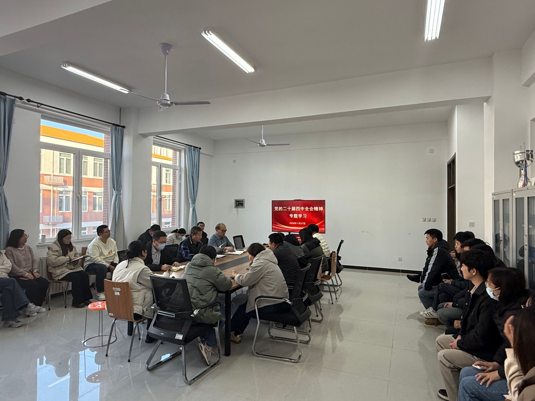 为深入学习贯彻党的二十届四中全会精神,切实把思想和行动统一到党中央决策部署上来,11月27日下午,电气自动化系在求是楼B406召开教职工大会,专题学习党的二十届四中全会精神。系党委书记葛洪伟主持会议,全体教职工参加学习,共同领悟全会精神实质,谋划学科发展新路径。